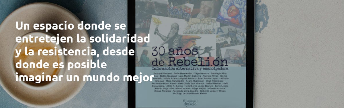 Acaba de aparecer 30 años de Rebelión. Información alternativa y emancipadora. Un libro que reúne a 30 voces vinculadas, en distintos periodos y de distinta forma, al periódico digital Rebelión.org, que en 2026 celebra su 30 aniversario.